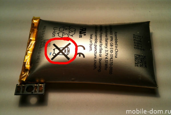 Хоть батарея и вздулась, но по-прежнему работает. Можно было его и дальше эксплуатировать, но я где-то слышал (или кто-то мне говорил), что надувшийся аккумулятор может неожиданно ВЗОРВАТЬСЯ! Возможно, это бред, но рисковать не хочется. Да и заряжать телефон каждый день надоело.