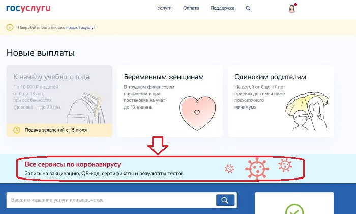 Справка! Проще всего это сделать на портале, введя в поисковую строку слово «вакцинация».