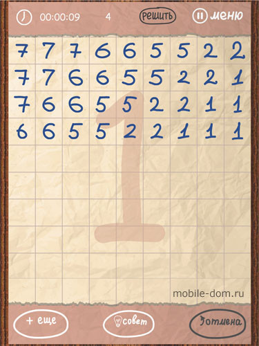 Я не мог обойти вниманием японские кроссворды, потому что это одна из моих любимых головоломок. Приложение выполнено в приятном стиле и содержит три уровня сложности. В бесплатной версии в каждом уровне доступны 10 головоломок. Все остальные покупаются по цене от 33 рублей.