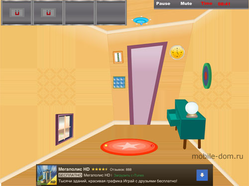 Перед вами комната и закрытая дверь. Задача — открыть дверь с помощью предметов, расположенных в комнате. Причём совершенно непонятно, как использовать эти предметы и где их найти, но решение у головоломки есть в любом случае. Честно говоря, у меня эта задачка вызвала затруднения. Если кому-то удастся её решить, не забудьте поделиться секретом в комментариях!)