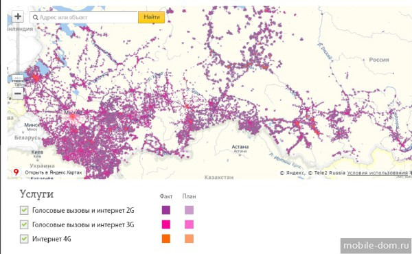 Если вас интересует, в каких конкретно городах работает зона покрытия сети Tele 2, расположение базовых станций связи вам покажет карта зоны покрытия Теле 2 3G и 4G по России.
