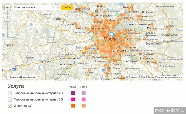 Сотовый оператор Теле 2 объявил итоги технического развития зоны обслуживания 4G сети в Москве и Московской области. За первую половину 2017 года выполнено 80% планов по строительству сети интернета в столице и области. На июнь 2017 года зона покрытия охватывала территорию, на которой проживает более 95% жителей Москвы и области.